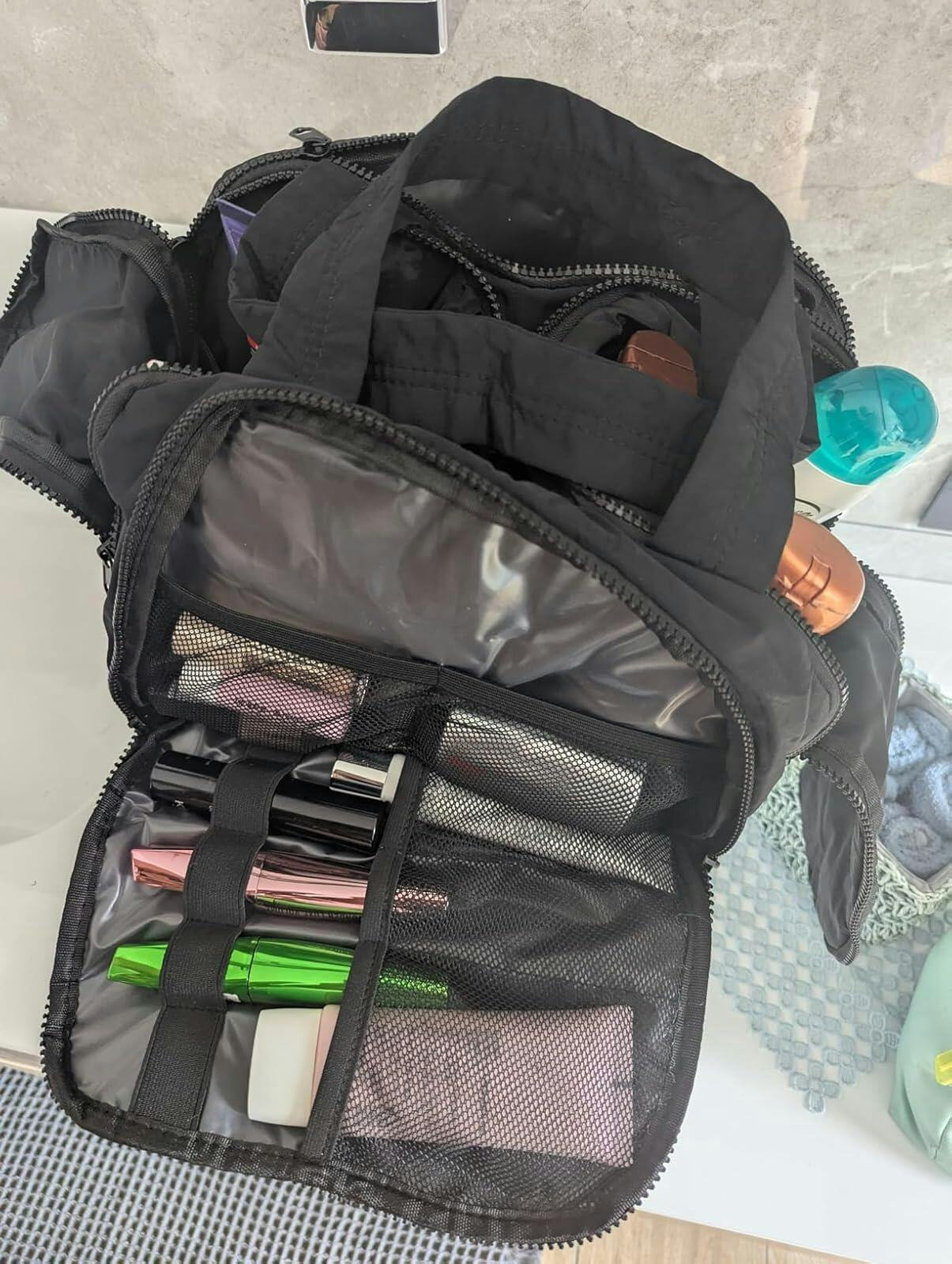 Sono rimasta sorpresa dalla grande capacità di questa borsa da toilette, perché dall’esterno non lo si direbbe. Le cerniere sono di buona qualità e il materiale è resistente. Ci sono molte reti portaoggetti che evitano che gli articoli da toeletta si confondano. Sono riuscita persino a inserire una bottiglia da 400 ml senza problemi. Inoltre, essendo morbida, è molto più facile da riporre rispetto a un vanity rigido